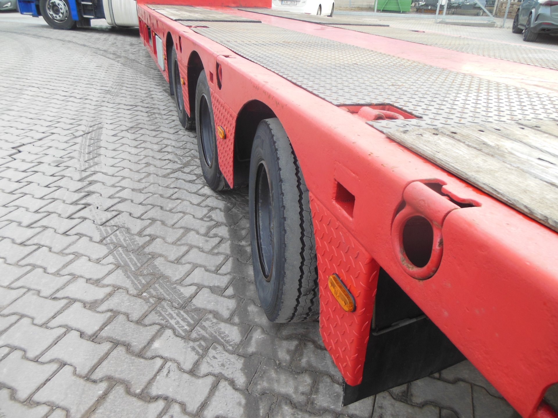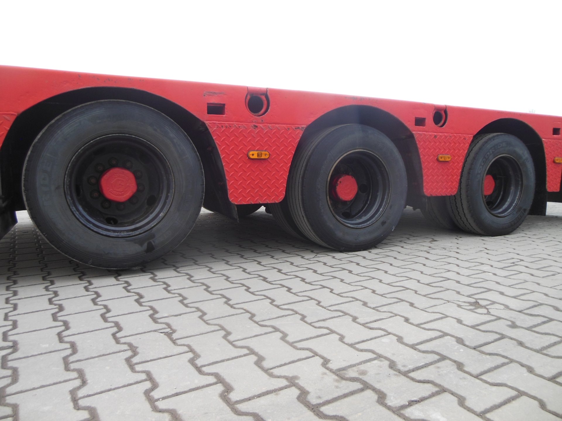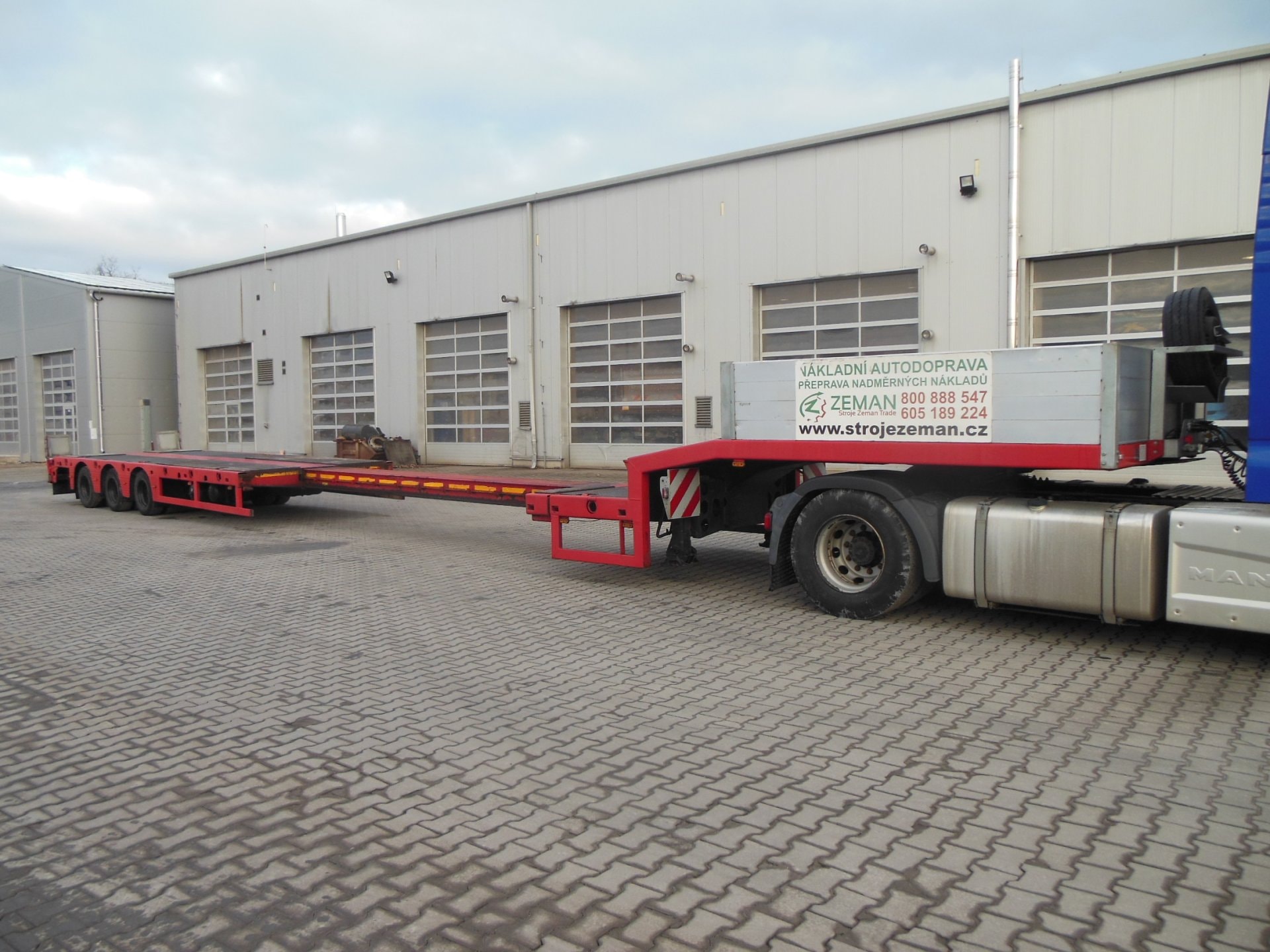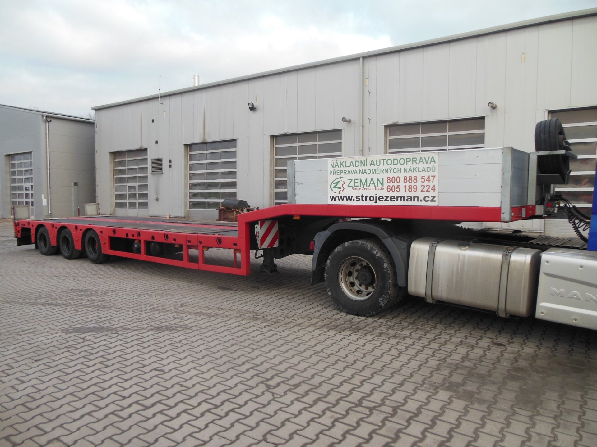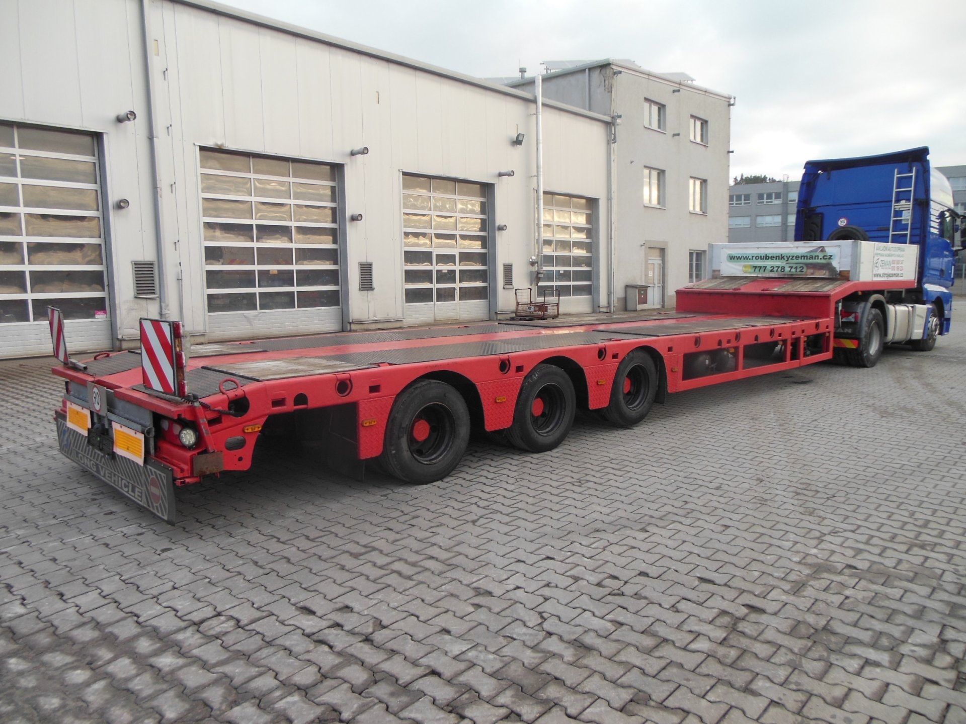 Návěs-podvalník, Kässbohrer LB3, Provoz 6/2008, zvedací náprava, nápravy Gigant, roztahovací o 6m, ložná výška 900 mm, ložná délka 9300 + 6000 mm, ložná šířka 2550 mm, ložná délka labutího krku 3900 mm, hliníkové rampy délka 2800 mm, bubnové brzdy, ABS, pneu 245/70 R17,5 stav: 1 osa 7 mm, 2 osa 8 mm, 3 osa 11 mm, rezerva, Celková hmotnost 48.000/42.000 kg, Provozní hmotnost 12.490 kg, Užitečná hmotnost 29.510 kg