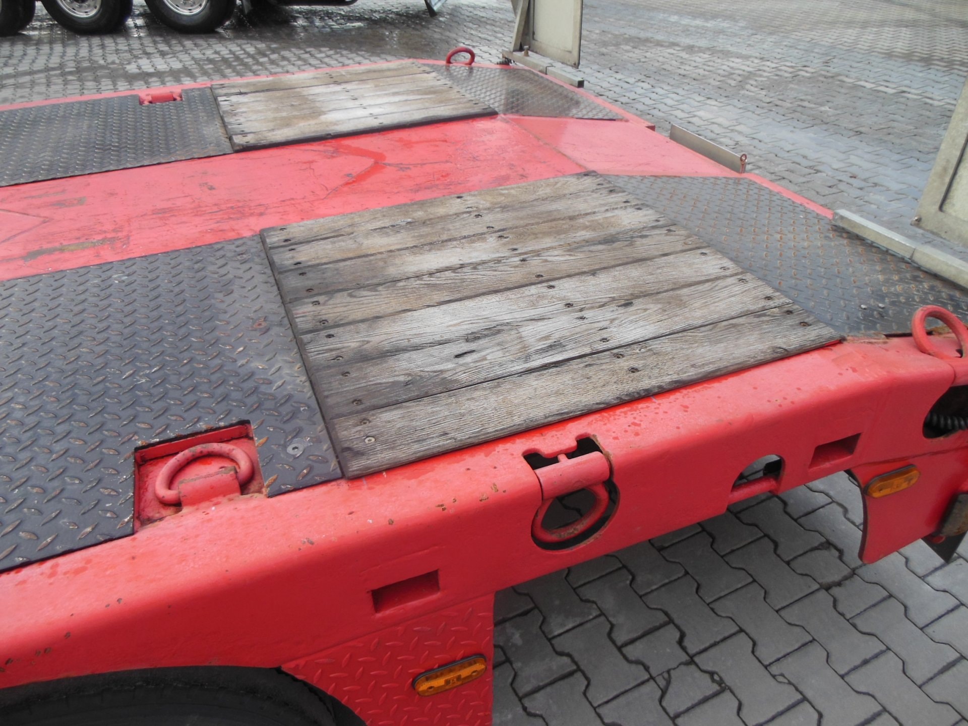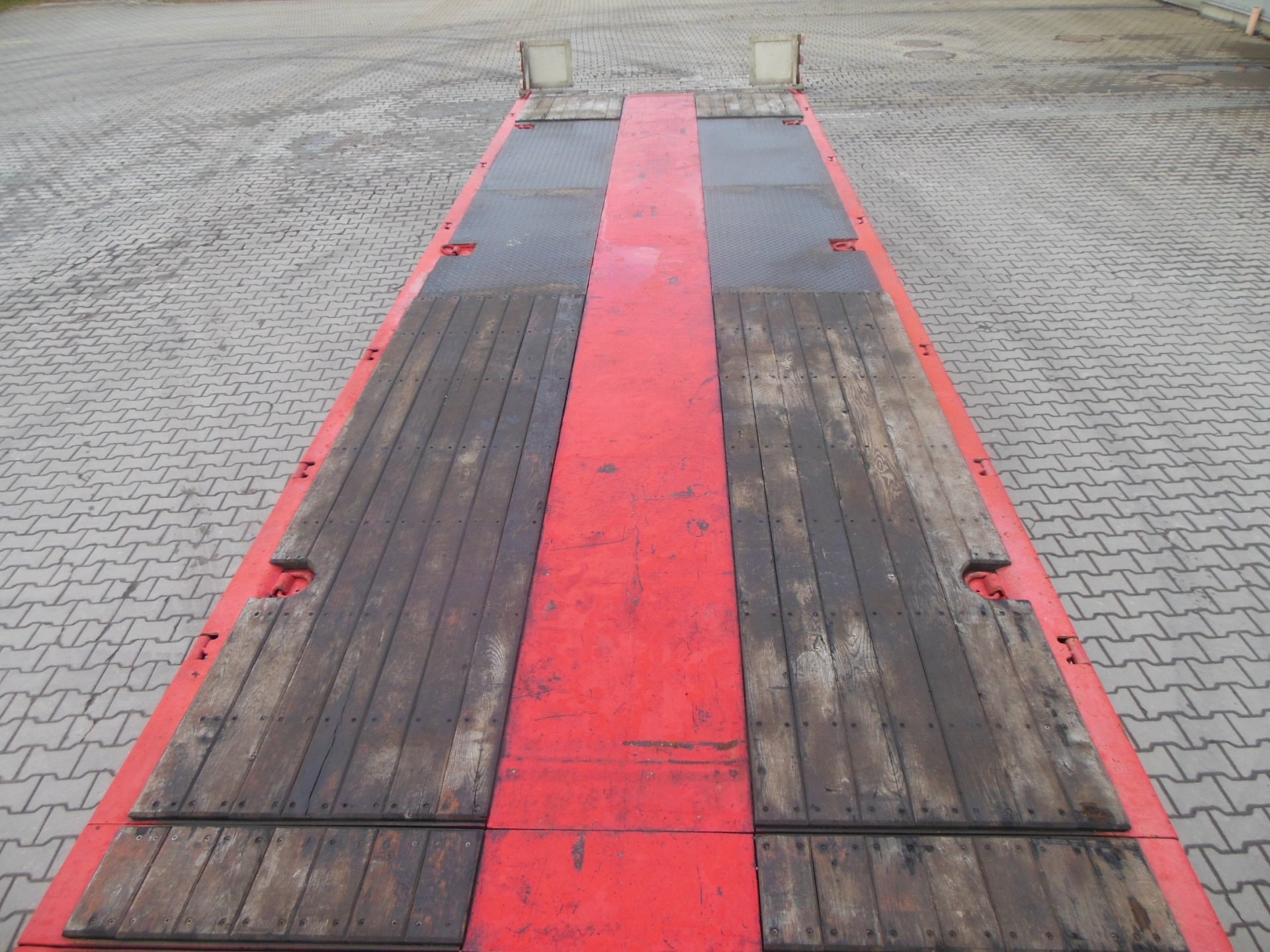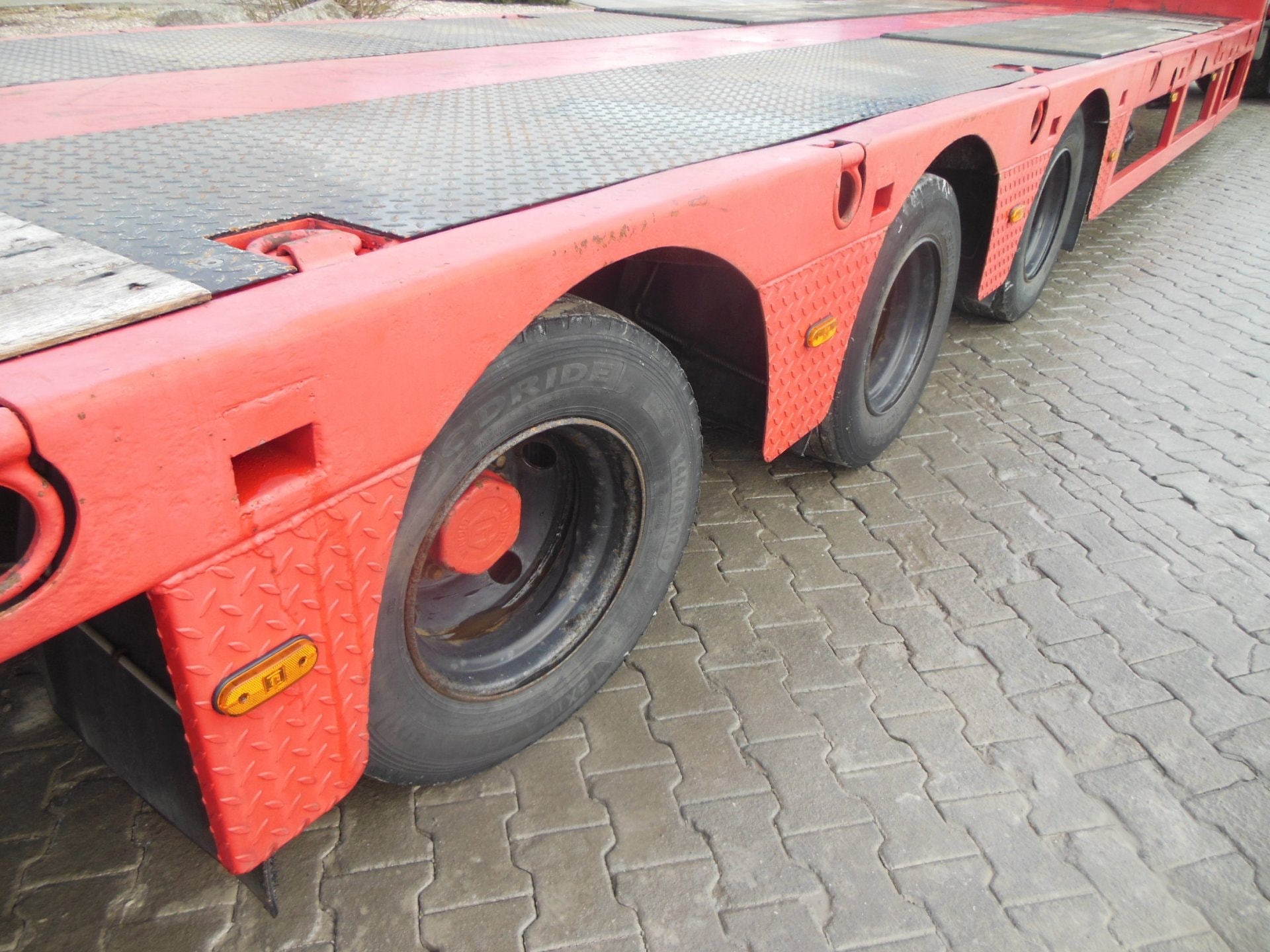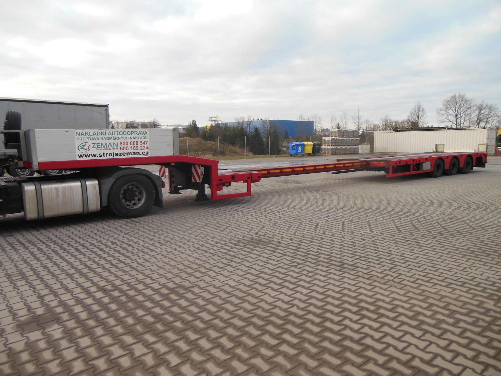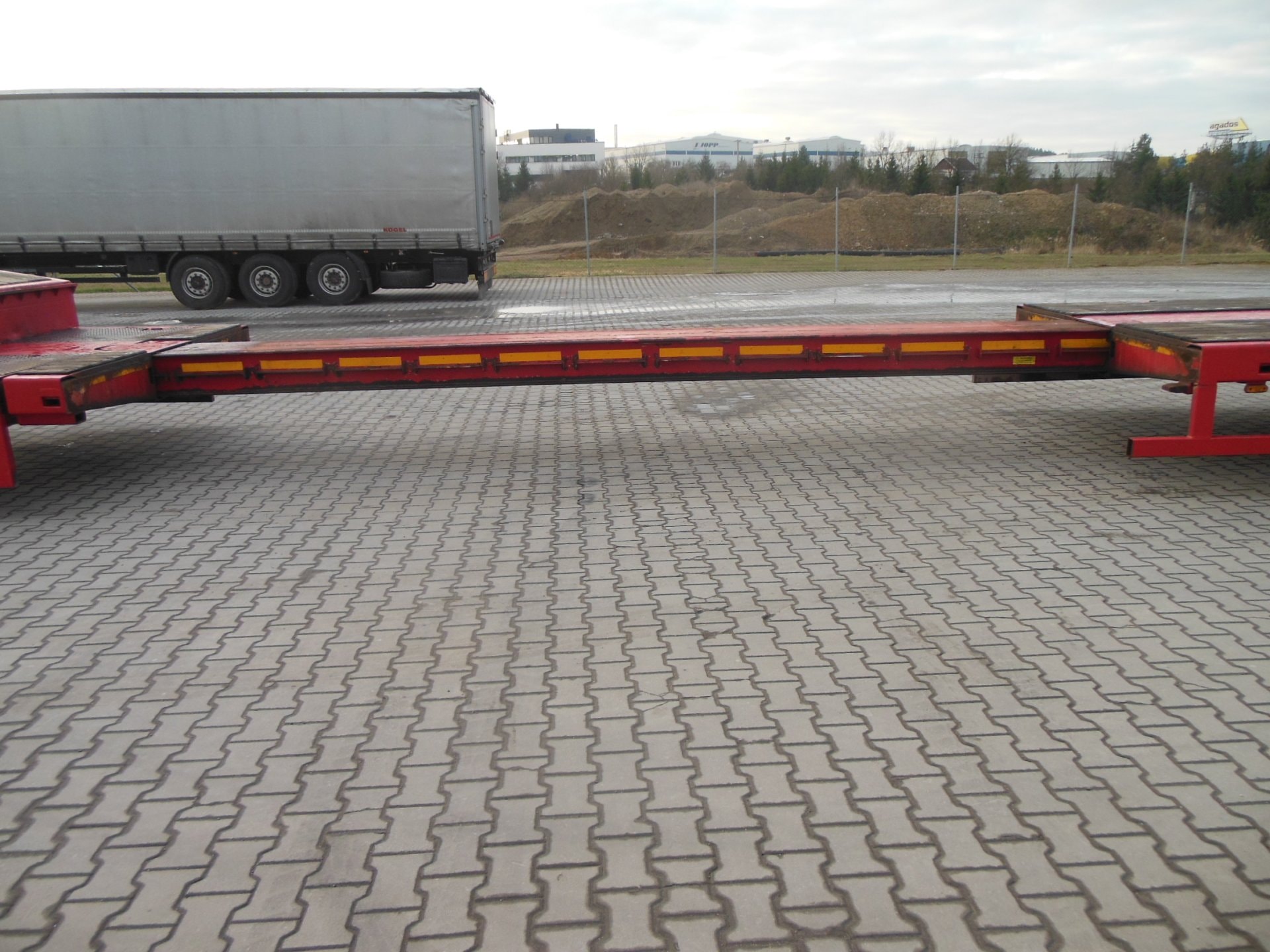 Návěs-podvalník, Kässbohrer LB3, Provoz 6/2008, zvedací náprava, nápravy Gigant, roztahovací o 6m, ložná výška 900 mm, ložná délka 9300 + 6000 mm, ložná šířka 2550 mm, ložná délka labutího krku 3900 mm, hliníkové rampy délka 2800 mm, bubnové brzdy, ABS, pneu 245/70 R17,5 stav: 1 osa 7 mm, 2 osa 8 mm, 3 osa 11 mm, rezerva, Celková hmotnost 48.000/42.000 kg, Provozní hmotnost 12.490 kg, Užitečná hmotnost 29.510 kg
