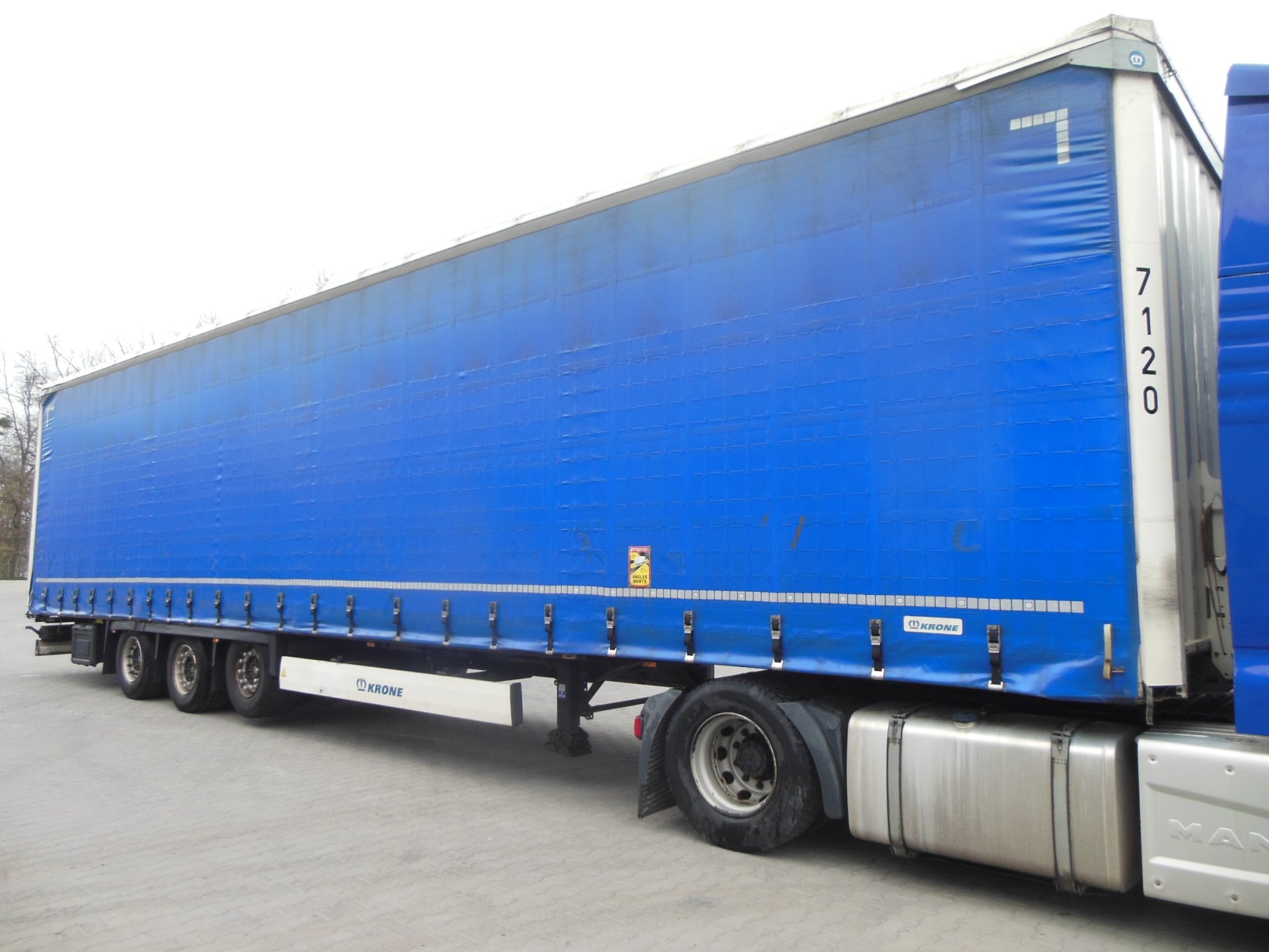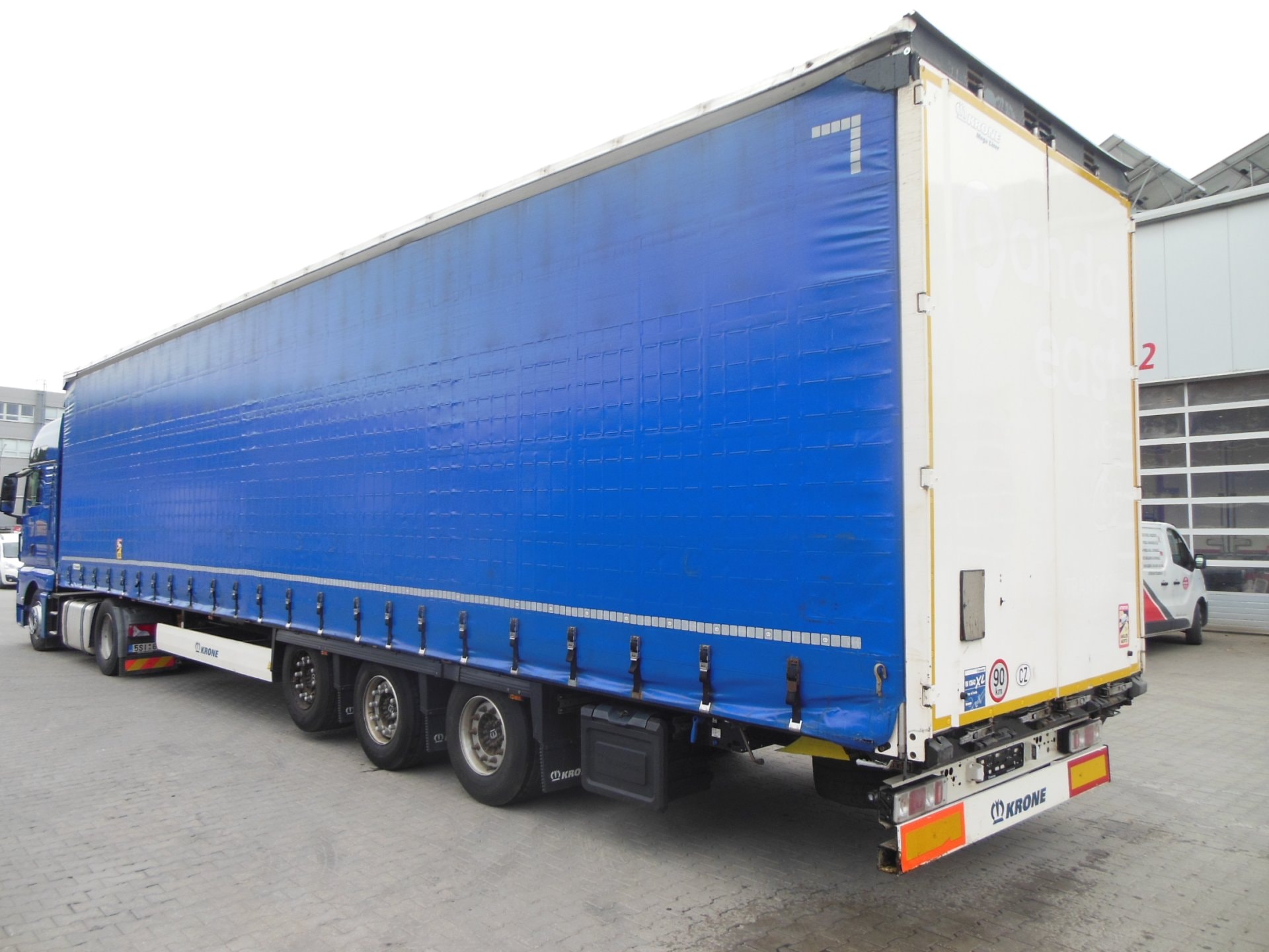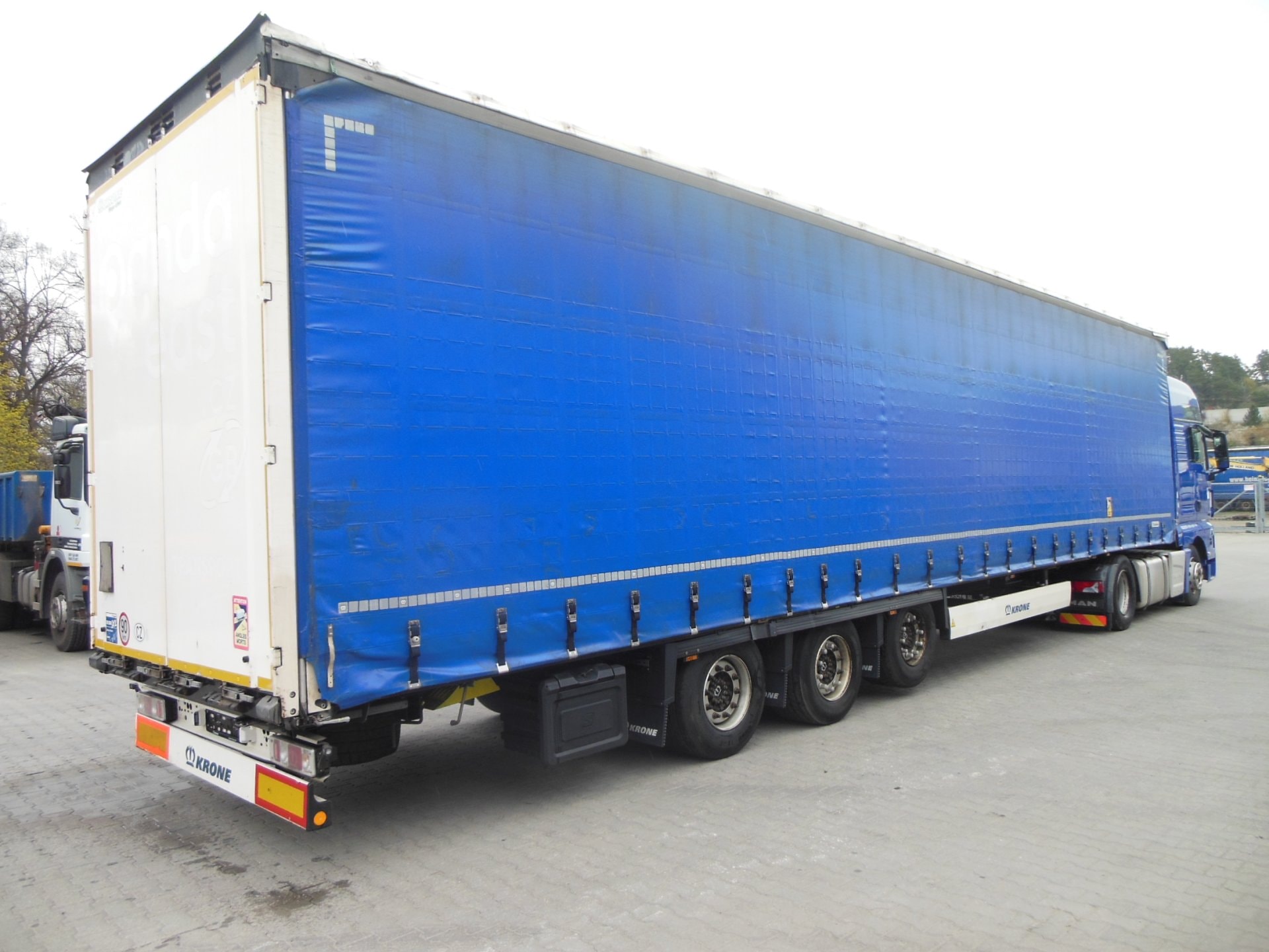 Návěs, Krone SD LowDeck, Provoz 4/2021, Zvedací náprava, nápravy Krone, třístranná shrnovačka, vrata, kotoučové brzdy, ABS, přizvedávání stropu levá + pravá strana, 3 ložné výšky, ložná výška 3 m, pneu 435/50 R19,5 stav: 1 osa 9 mm, 2 osa 11 mm, 3 osa 12 mm, rezerva, všechny certifikáty, Plachta antivandal, Pravidelný servis, Servisní knížka.