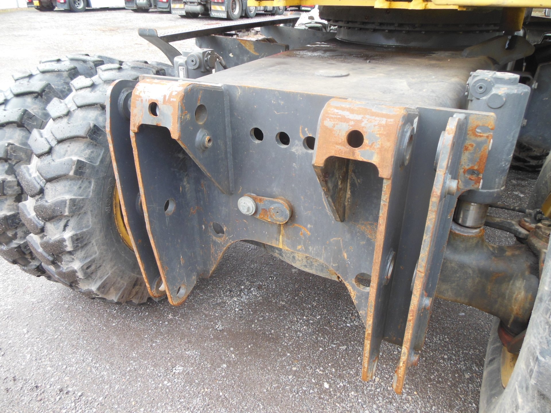 Kolové rypadlo, NEW HOLLAND WE 150, Rok výroby 2011, stav motohodin 5514, rychloupinák, hydraulické vývody na svahovou lžíci a hydraulické kladivo, hmotnost 16.000 kg, motor 90kw.