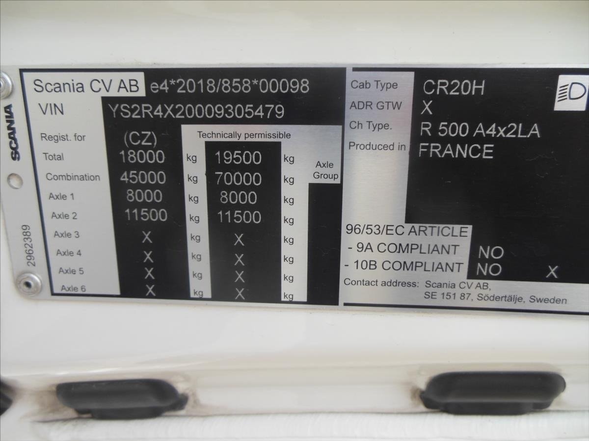 Tahač, Scania R500 SUPER!!!, Provoz 8/2022, Najeto 367.876 km, automatická převodovka, Retarder, Euro 6, ABS, klima, nezávislá klima, tempomat, nezávislé topení, lednička, 2 nádrže (525+395 l), uzávěrka diferenciálu, pneu přední 385/55 R22,5 stav 9 mm, pneu zadní 315/70 R22,5 stav 14 mm.