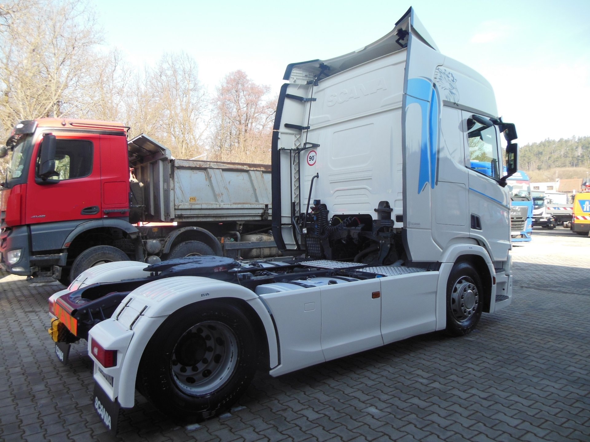 Tahač, Scania R410 Standart, Provoz 11/2019, Najeto 745.924 km, automatická převodovka, 4x2, Retarder, Euro 6D, ABS, klima, nezávislá klima, nezávislé topení, tempomat, lednička, mikrovlnka, 2 lůžka, 2 nádrže (640+500l), uzávěrka diferenciálu, Nové tacho GEN 2, zadní náprava 4 měchy, pneu 315/70 R22,5 stav: 1 osa 15 mm, 2 osa 12 mm, První majitel, Servisní knížka, TOP STAV!!!