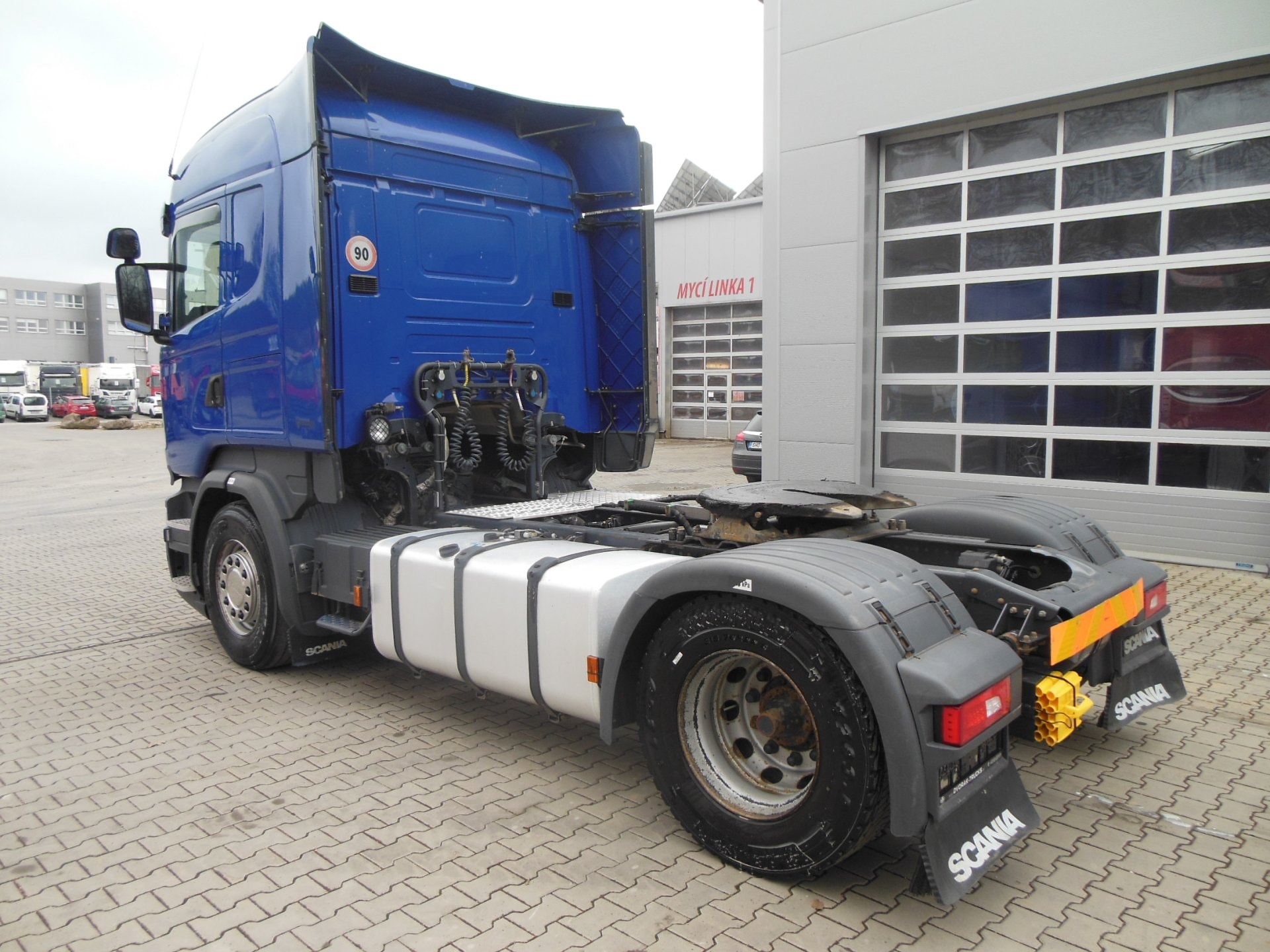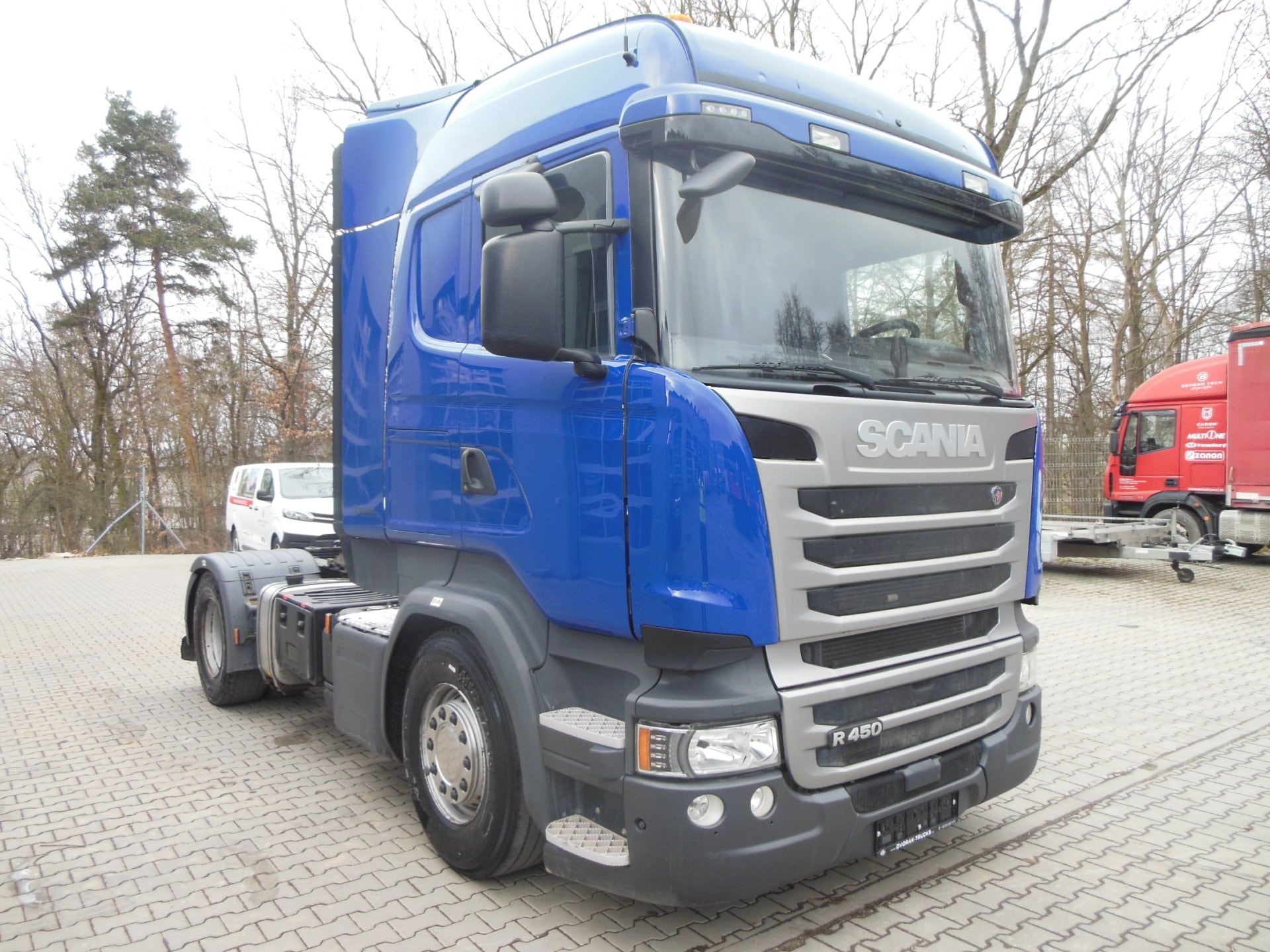 Tahač, Scania R450, Provoz: 7/2017, Najeto 584.614 km, automatická převodovka, 4x2, Retarder, Euro 6c, ABS, klima, nezávislé topení, tempomat, lednička, 2 lůžka, nádrž 700 l, uzávěrka diferenciálu, hydraulika pro sklopný návěs, pneu přední 385/65 R22,5 stav 9 mm, pneu zadní 315/70 R22,5 stav 10 mm, První majitel, Pravidelný servis.