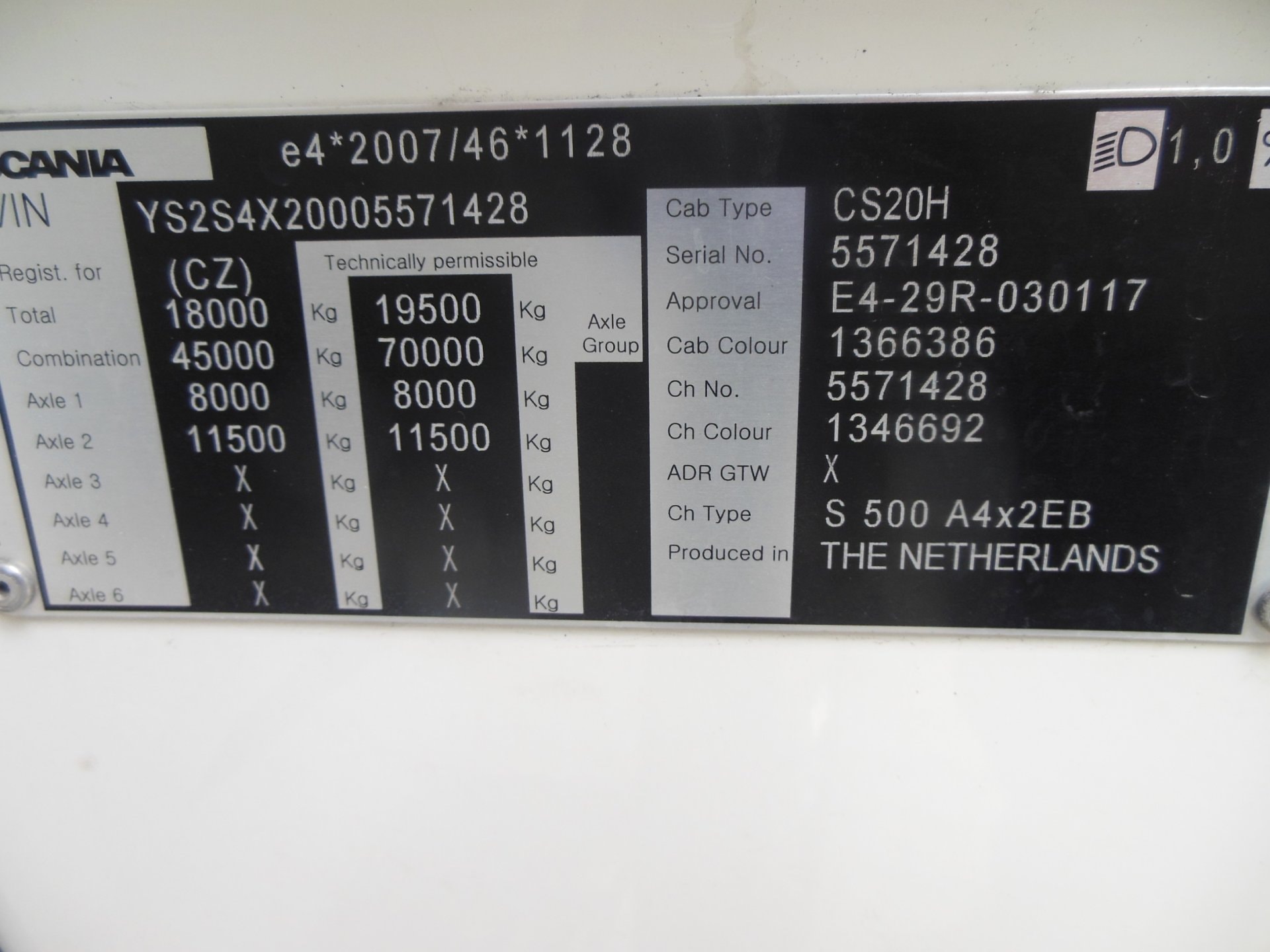 Tahač, Scania S500 LowDeck, SKLADEM 3 KUSY!!!, Provoz 10/2019, Najeto 704.279 km, automatická převodovka, 4x2, Retarder, Euro 6, ABS, klima, nezávislá klima, tempomat, nezávislé topení, 2 lůžka, lednička, 2 nádrže (500+500 l), uzávěrka diferenciálu, nové tacho - GEN 2, komplet vzduchové pérování, přední pneu 385/55 R22,5 stav 8 mm, zadní pneu 295/60 R22,5 stav 10 mm, První majitel, Pravidelný servis.