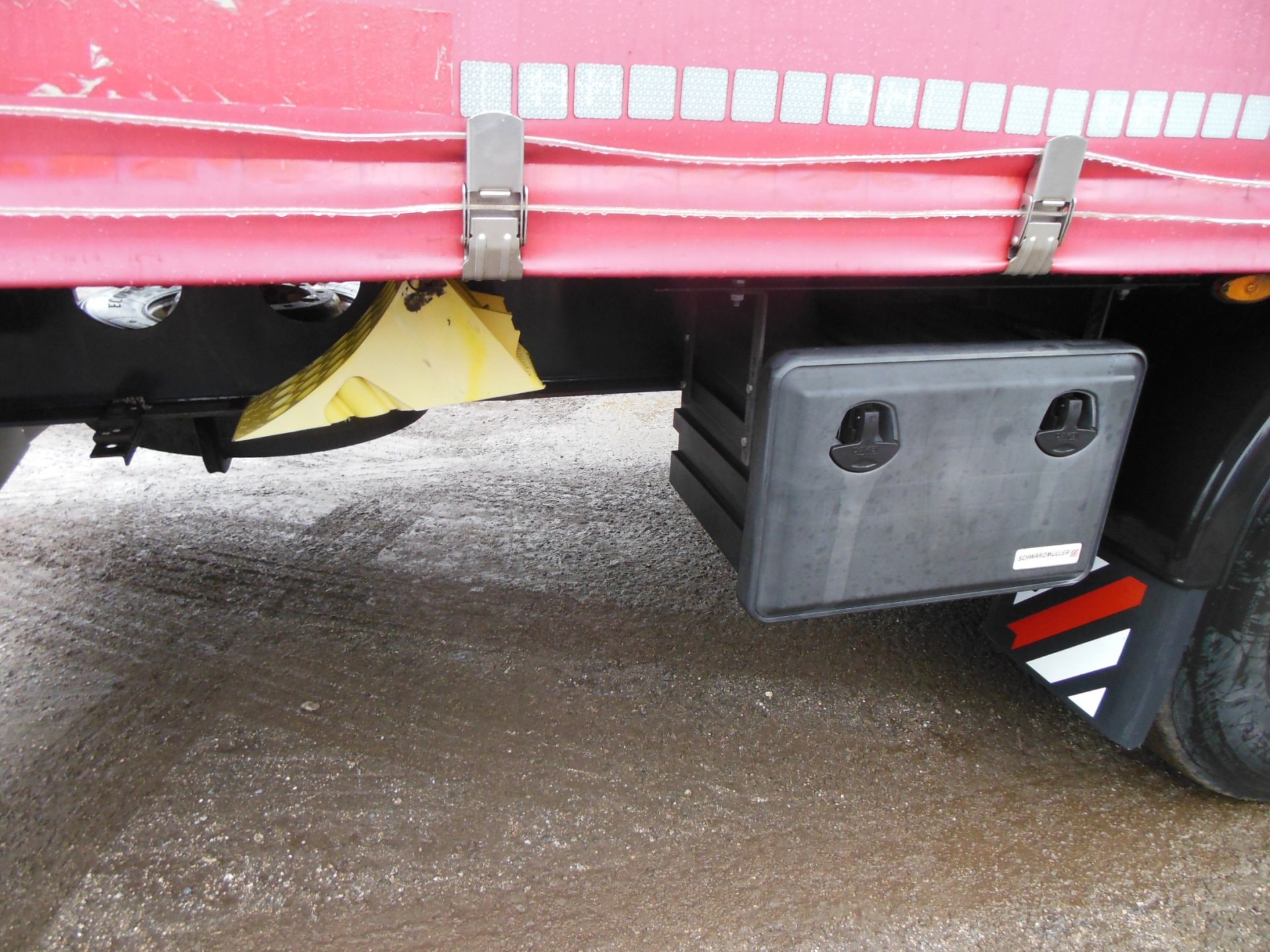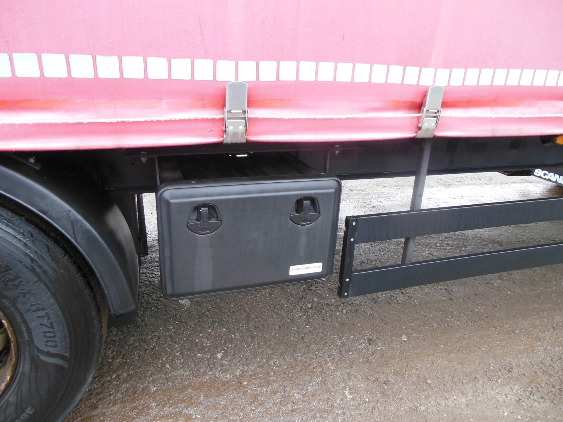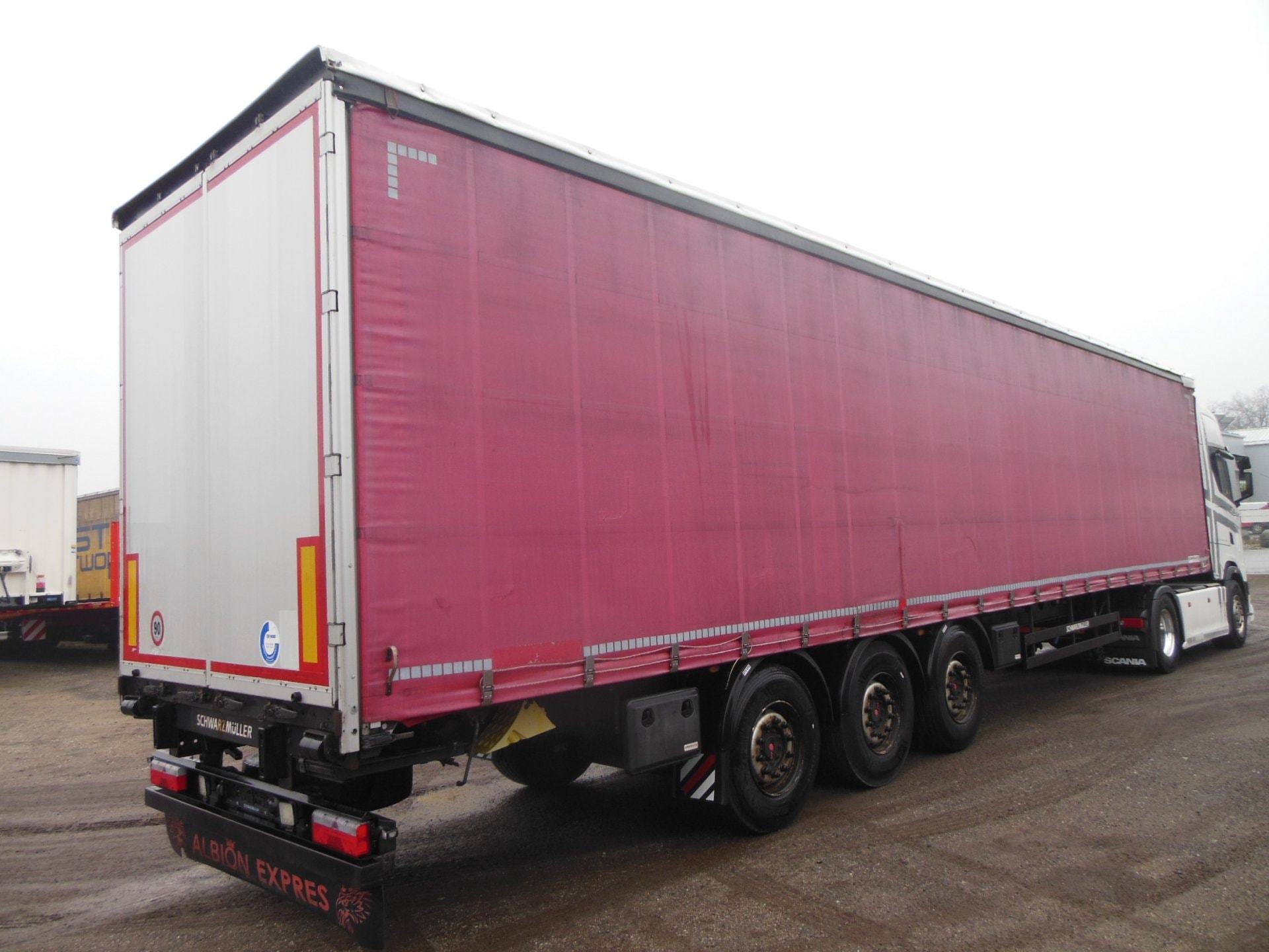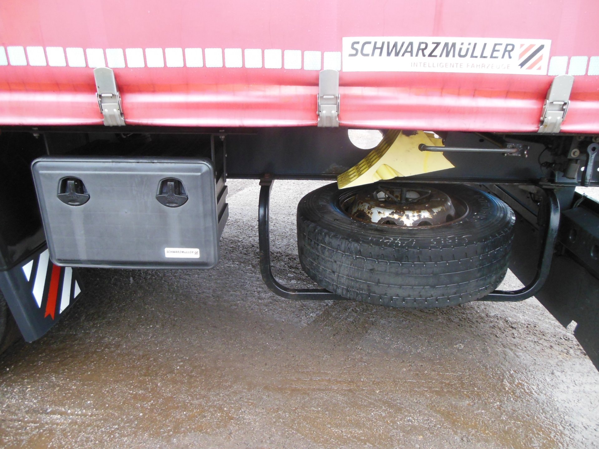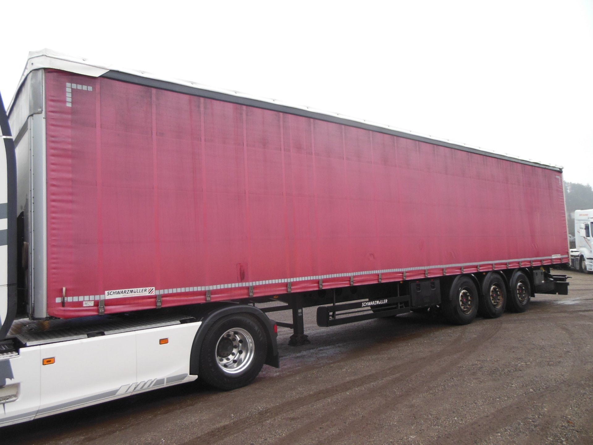 Návěs-valník, Schwarzmüller SPA 3/E, COIL MULDE, Provoz 12/2018, zvedací náprava, nápravy SAF, třístranná shrnovačka, vrata, mulda 7500 mm, kotoučové brzdy, ABS, pneu 385/65 R22,5 stav: 1 osa 13 mm, 2 osa 14 mm, 3 osa 11 mm, ložná výška 2716 mm, rezerva, Provozní hmotnost 6.360 kg, Celková hmotnost 36.000 kg.