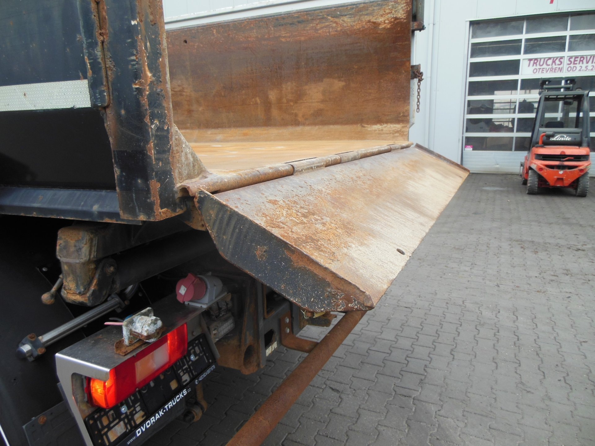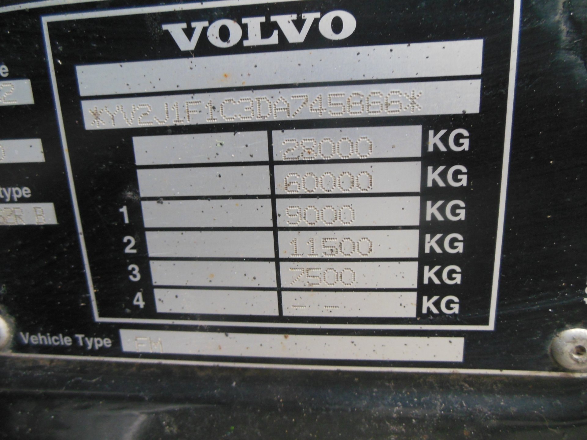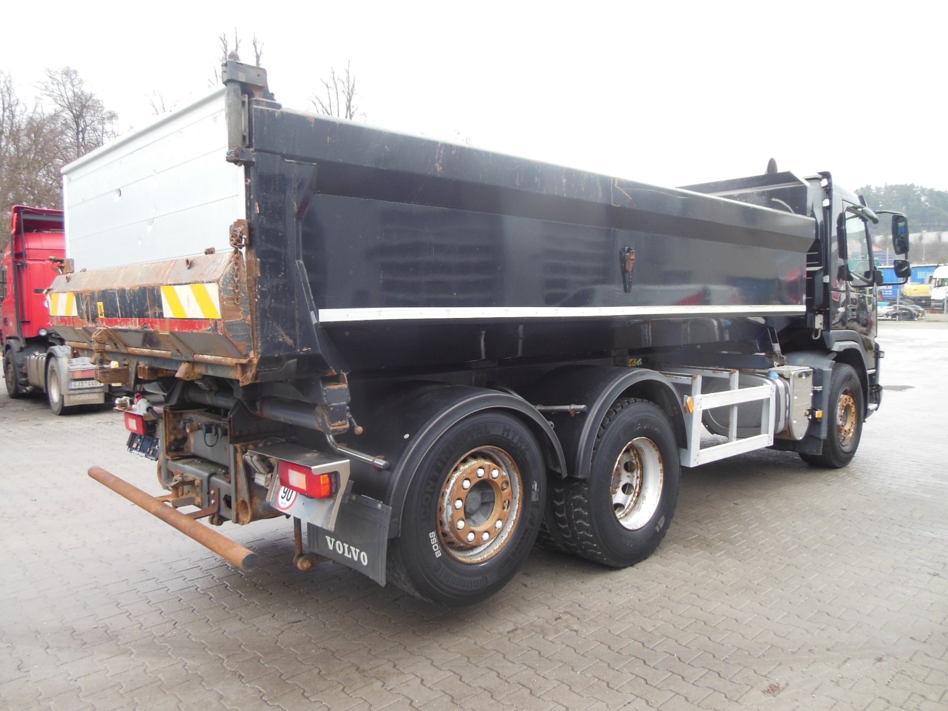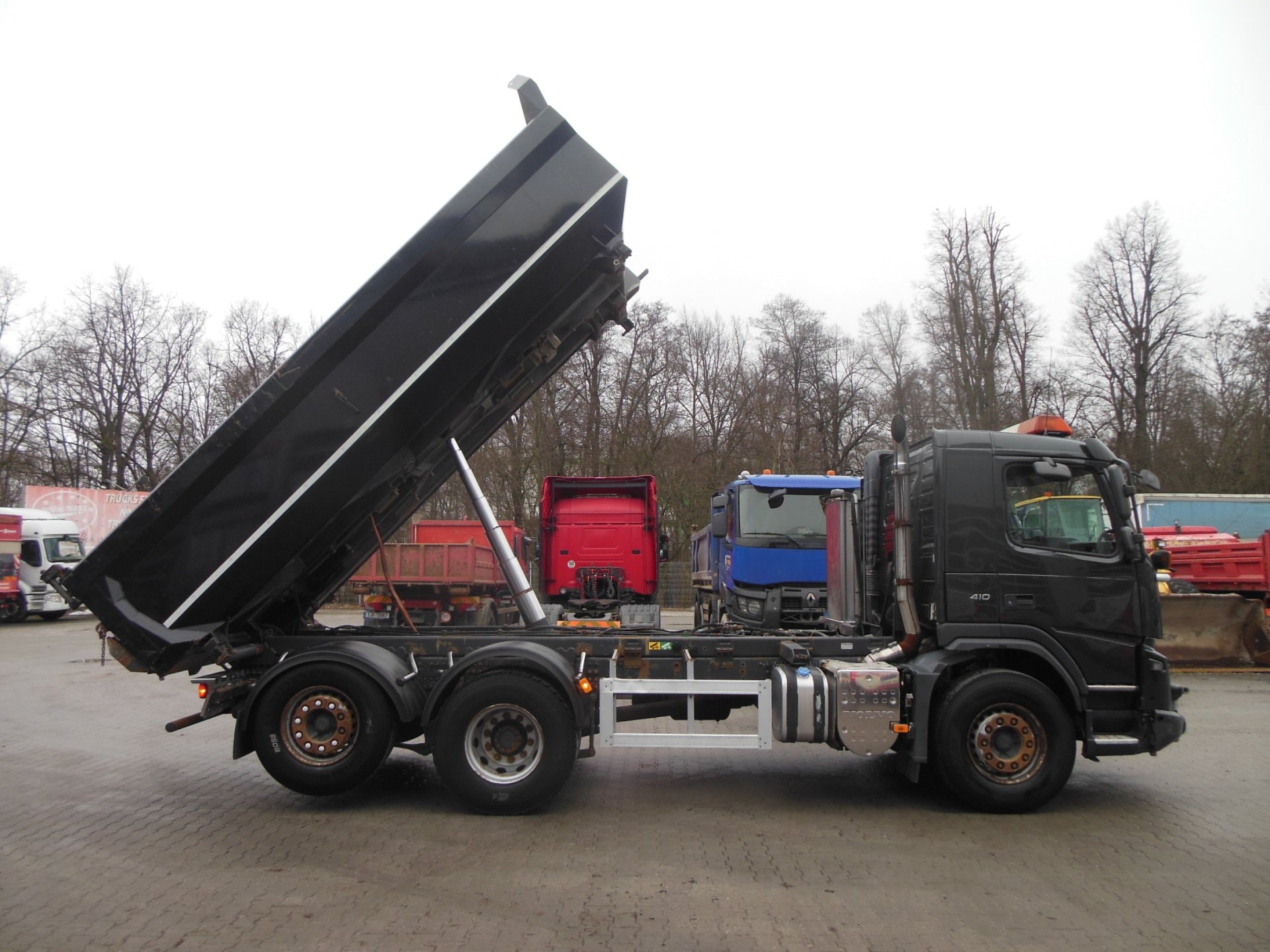 Nákladní aut-sklápěč, Volvo FMX 410, Provoz 7/2013, Najeto 354.719 km, 6x2, třetí osa zvedací + natáčecí, 410 PS, automatická převodovka, ABS, klima, nezávislé topení, tempomat, uzávěrka diferenciálu, hydraulika, sklápěč S1, nástavba Sörling, ložná plocha 5090x2400x950 mm, přední náprava péra, zadní nápravy měchy, pneu: 1 osa 385/65 R22,5 stav 10 mm, 2 osa 315/80 R22,5 stav 14 mm, 3 osa 385/65 R22,5 stav 11 mm. Provozní hmotnost 13.115 kg, Celková hmotnost 25.000 kg, Užitečná hmotnost 11.885 kg.