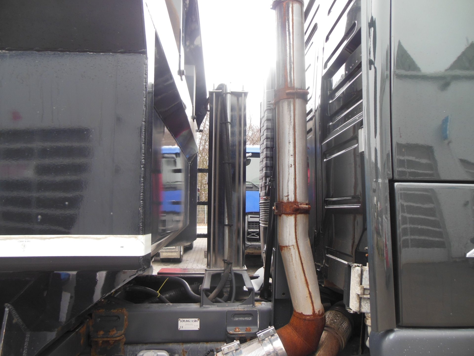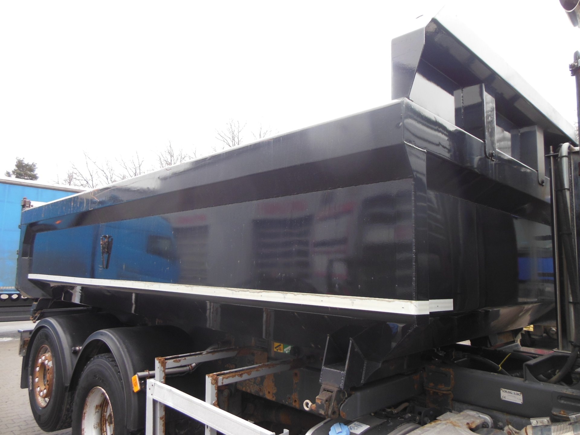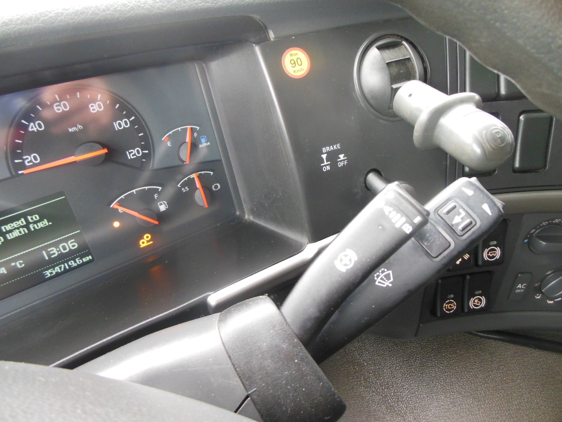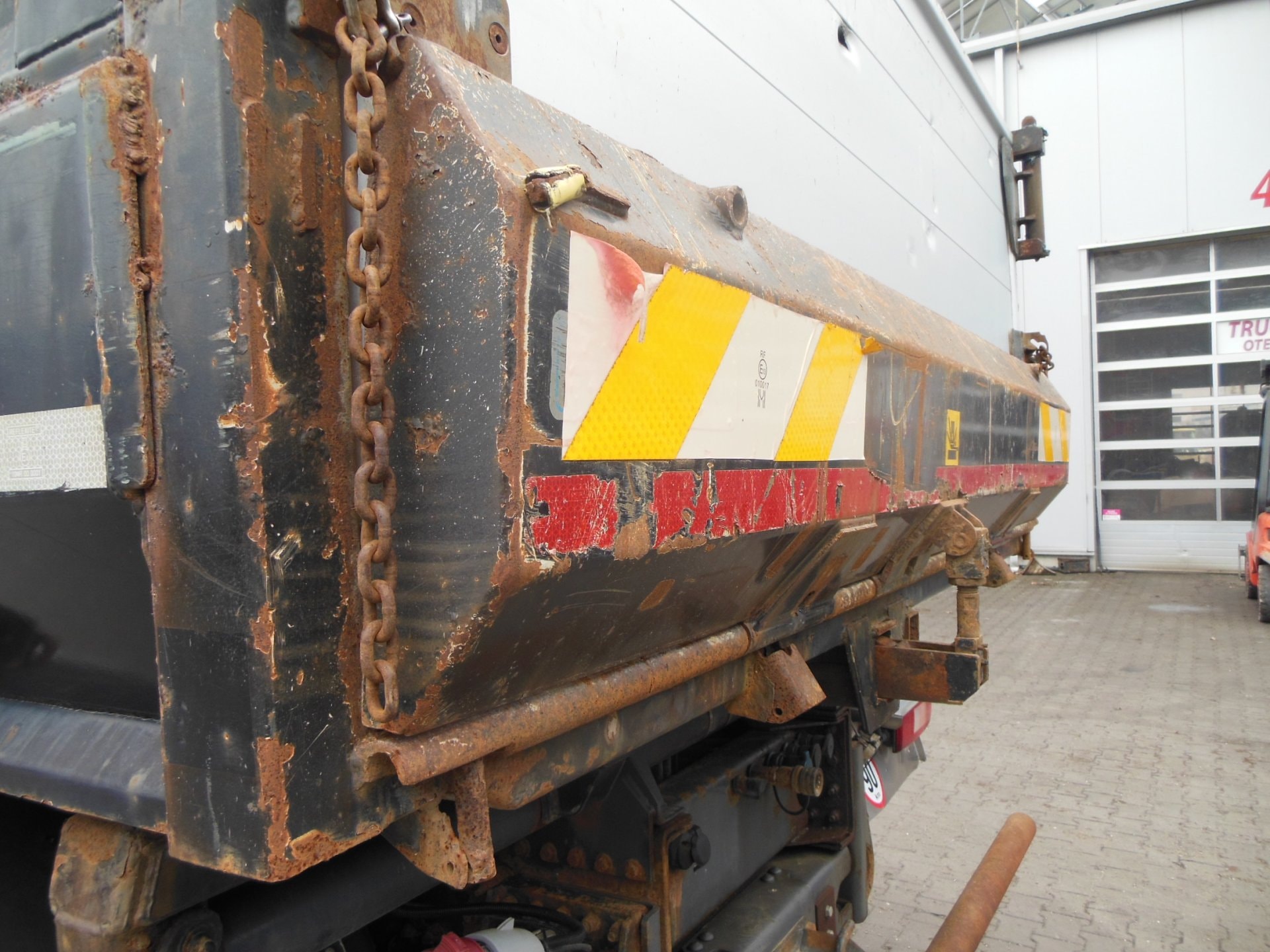 Nákladní aut-sklápěč, Volvo FMX 410, Provoz 7/2013, Najeto 354.719 km, 6x2, třetí osa zvedací + natáčecí, 410 PS, automatická převodovka, ABS, klima, nezávislé topení, tempomat, uzávěrka diferenciálu, hydraulika, sklápěč S1, nástavba Sörling, ložná plocha 5090x2400x950 mm, přední náprava péra, zadní nápravy měchy, pneu: 1 osa 385/65 R22,5 stav 10 mm, 2 osa 315/80 R22,5 stav 14 mm, 3 osa 385/65 R22,5 stav 11 mm. Provozní hmotnost 13.115 kg, Celková hmotnost 25.000 kg, Užitečná hmotnost 11.885 kg.